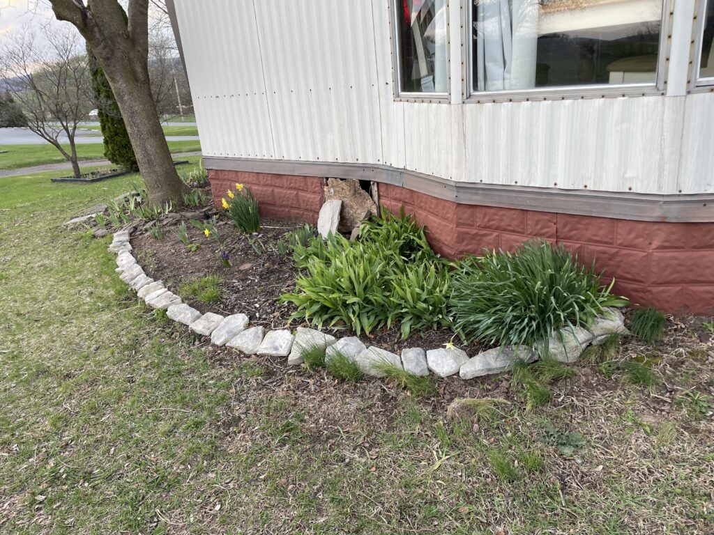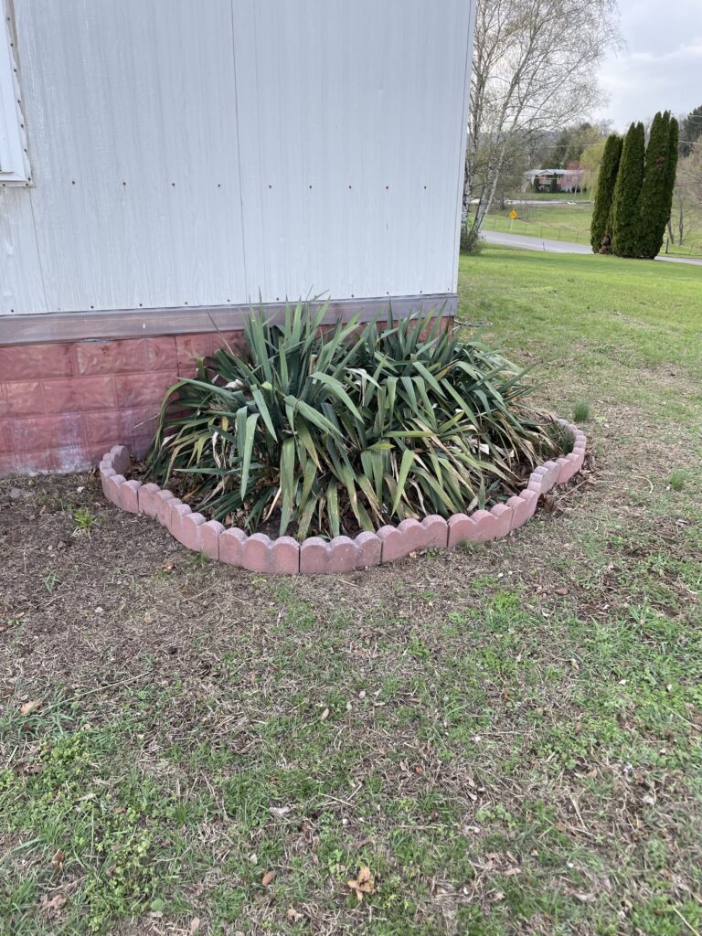 We have finally been getting into a routine since having the baby, so I have been starting to keep up with chores again. But in more exciting news, I am falling more in love with my house as we’ve put more work into it through painting, decorating, and other ways. I love thrifting and finding new ways to make our home more cozy and feel like us. I also have been hard at work with cleaning up and landscaping our property! The flower beds needed raked out, and we moved around retaining stones to make pretty borders.